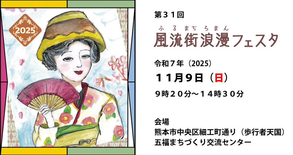 「風流街浪漫フェスタ」は、地域の皆様による手作りのお祭りです。地域のこどもたちが毎年笑顔で集まれるような、大人になっても思い出してくれるようなイベントを目指し、地域の各種団体、町内会の皆様、学校とPTA、その他いろいろな皆様の協力で開催しています。 昔ながらの伝統行事を重んじ、熊本市中央区にありながら田舎のような雰囲気も漂う、元気で楽しいお祭りです。このフェスタがこどもたちの“ふるさと”になってくれればと願っています。